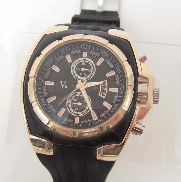 GOLD & BLACK FACE QUARTZ SPORTS WATCH