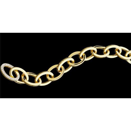14k Yellow Gold Bracelet featuring Oval interlocking links. The Clasp is an Oval link as well, and it is encrusted with 'sparkling' round Diamonds. The Diamond Total Weight = .65 CARATS! This Bracelet is 8" in Length so it is suitable for a Womans LARGE WRIST - as well as - a Mans Average wrist.