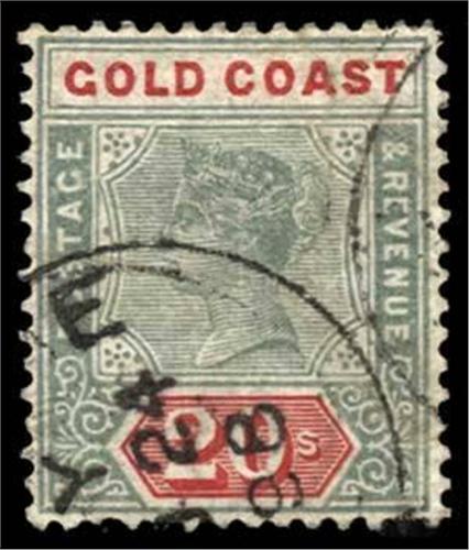 1889-1904 20s green and red (SG 24) "green faded, creased and defective at top" as stated on RPS Cert (2003) still very acceptable example of rare stamp which is not priced used in SG catalogue (see footnote)