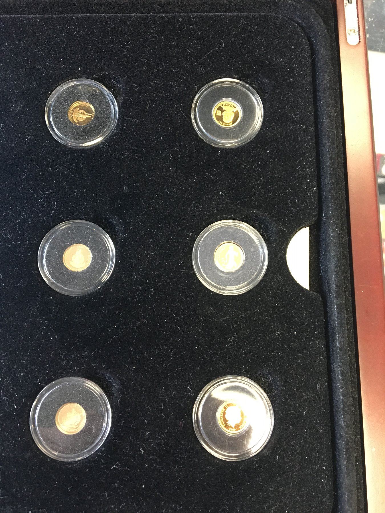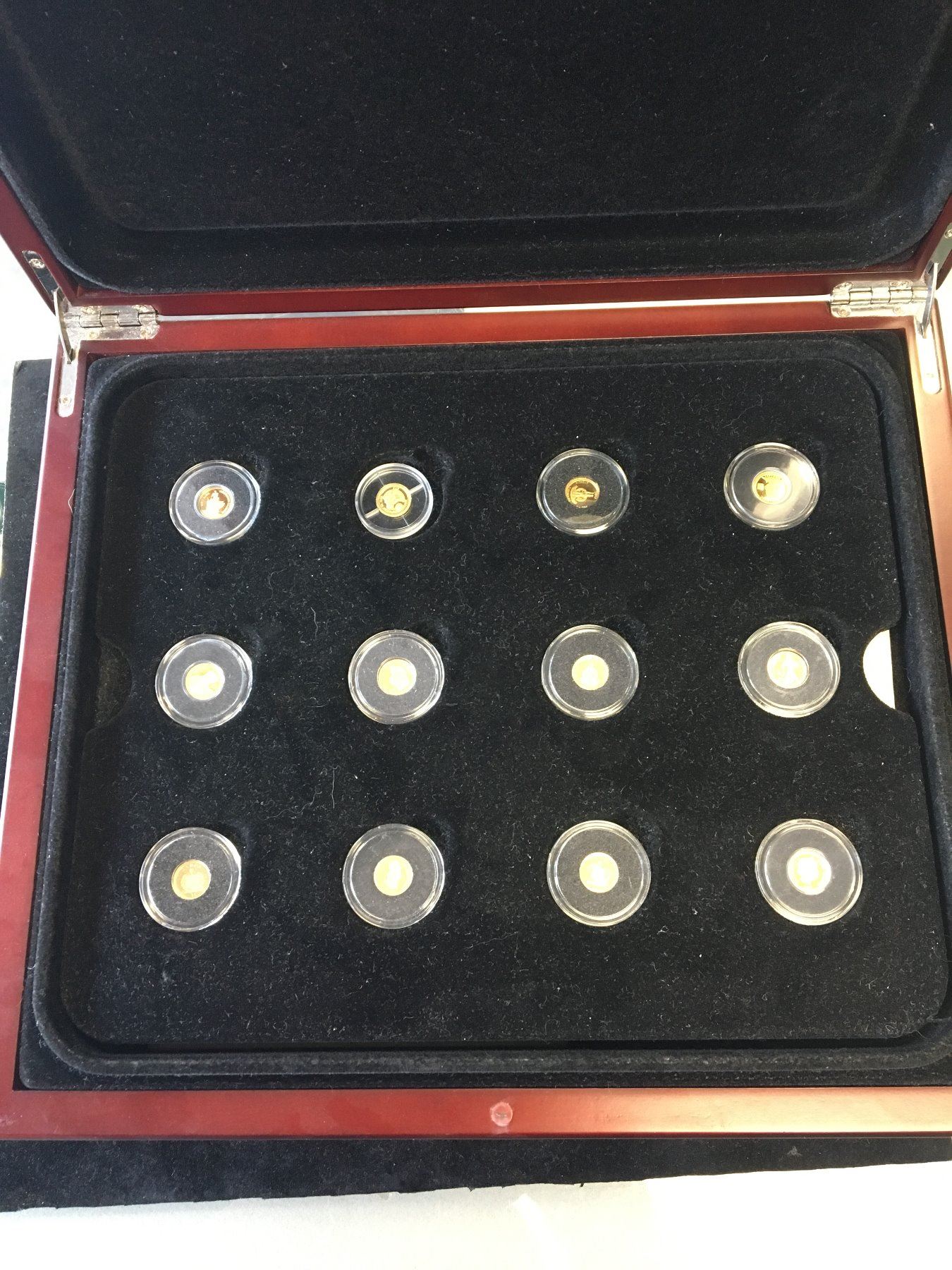 NICE SET HOUSED IN A WOODEN CASE!12 X.5 GRAM WORLD GOLD COINS!
