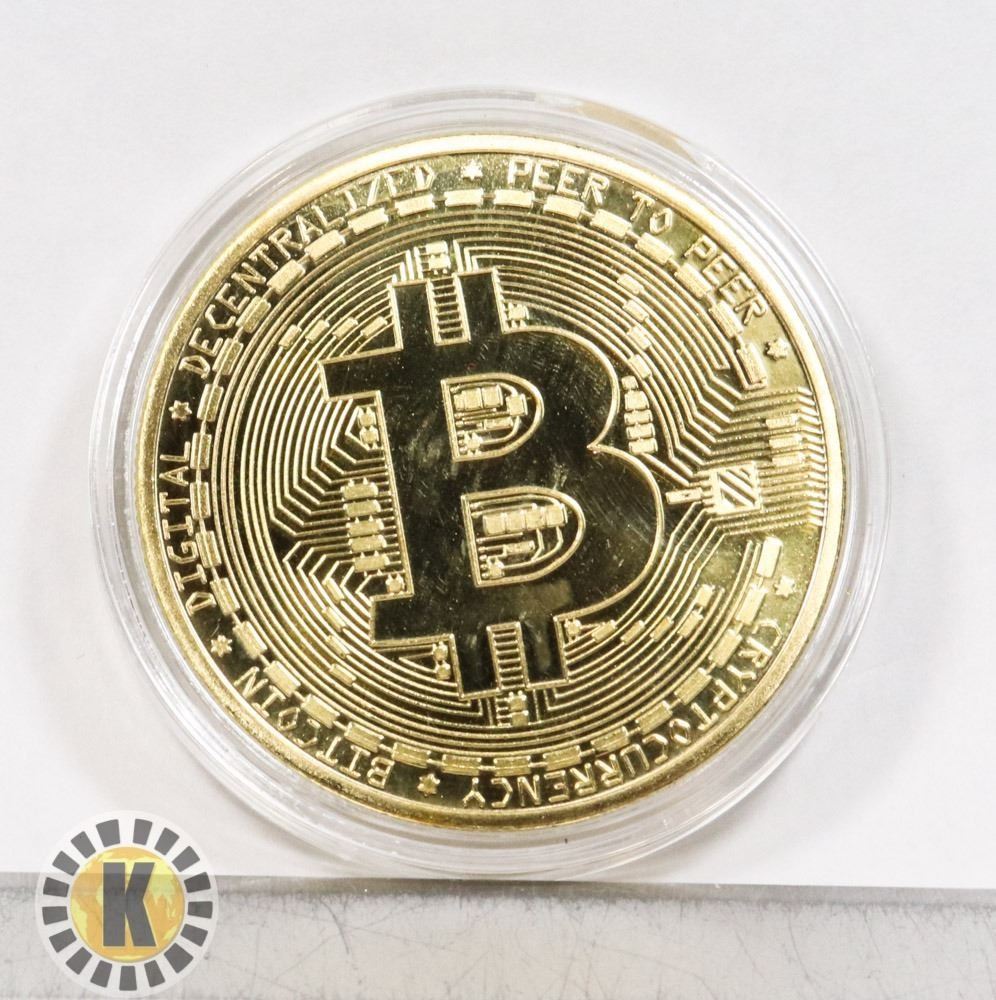 GOLD COLOR BITCOIN NOVELTY COIN IN CAPSULE