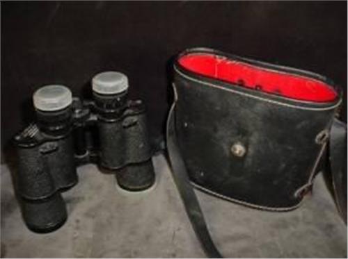 GOLD CREST BINOCULARS IN CASE 7X35 61360 WITH THREE OF FOUR LENS CAPS.