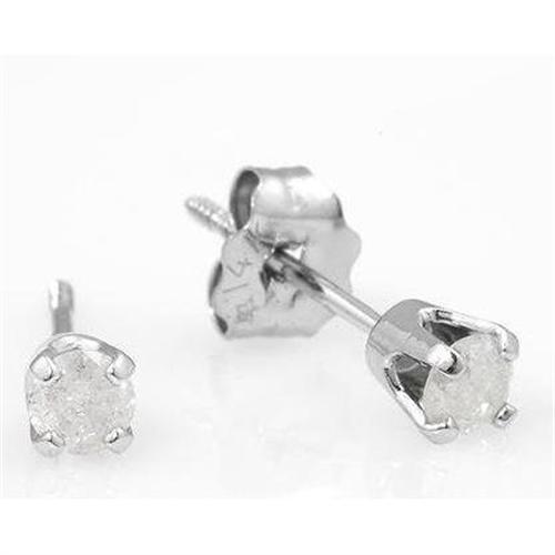 14k White GOLD Earrings each set with a GENUINE DIAMOND. The Diamond Total Weight = .20 CARATS! The Diamonds are Good 'I' Color and they are 'I2' Clarity. The Earrings have post style backs for pierced ears.