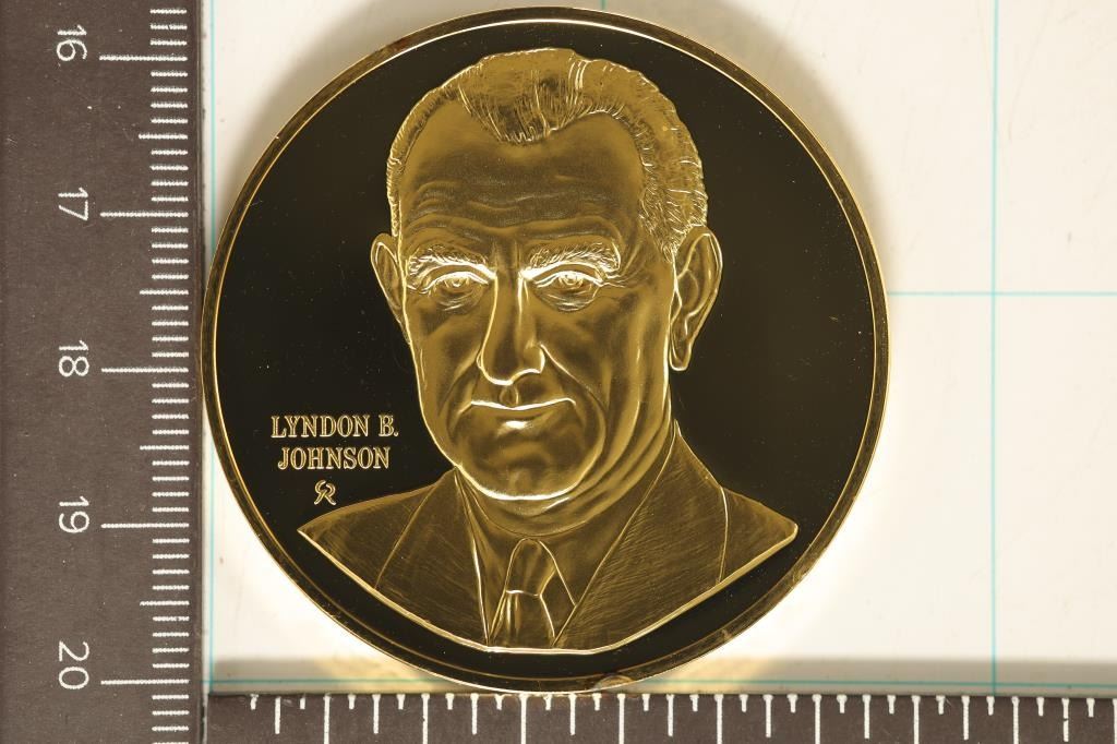 SILVER PROOF PRESIDENTIAL ROUND, LYNDON B. JOHNSON. IN HARD PLASTIC CAPSULE