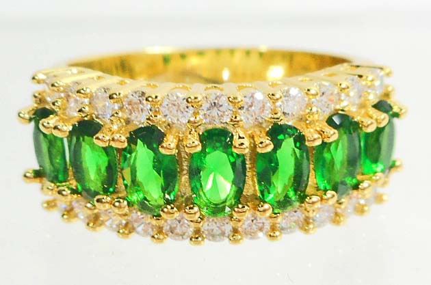 GOLD FILLED GREEN EMERALD LADIES RING - SIZE 7