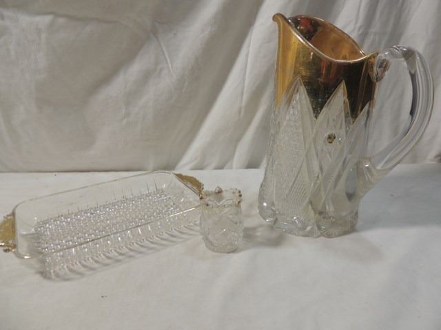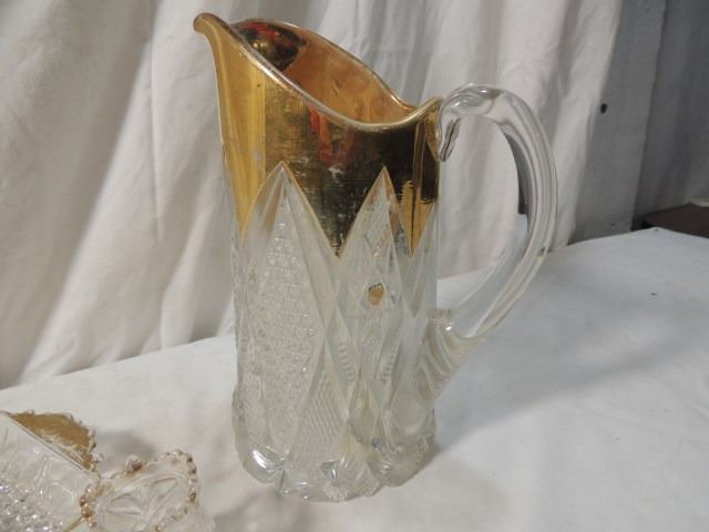 GOLD FLASH PRESSED GLASS PITCHER TOOTHPICK MORE