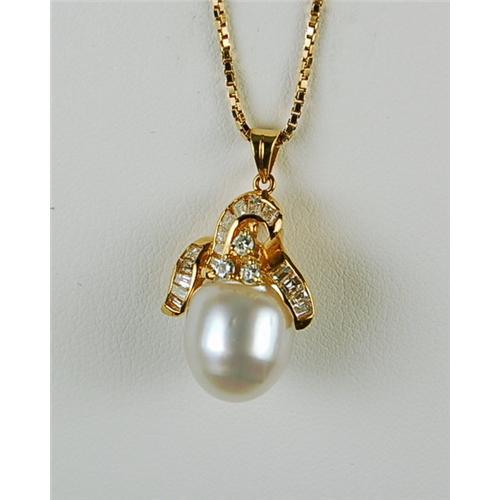 <tr><td>Title:GOLD NECKLACE 11MM SOUTH SEA PEARL w DIAMONDS </td></tr>