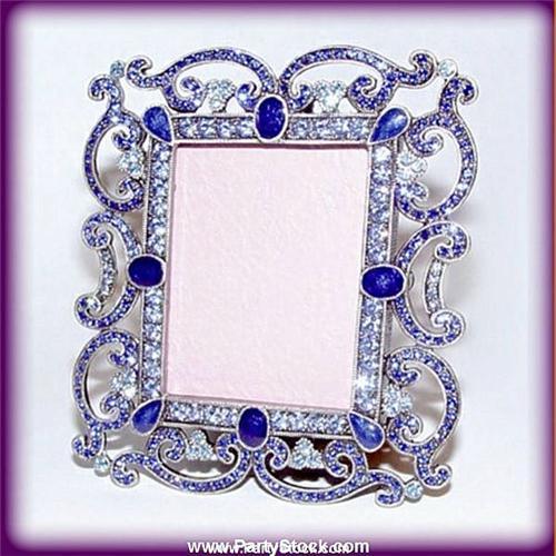 24K GOLD ORNATE BLUE SWAROVSKI CRYSTAL PHOTO FRAME P-12 BL<p>Height: 2 inch
