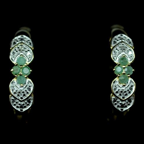 GOLD OVER STERLING SILVER EMERALD AND DIAMOND EARRINGS