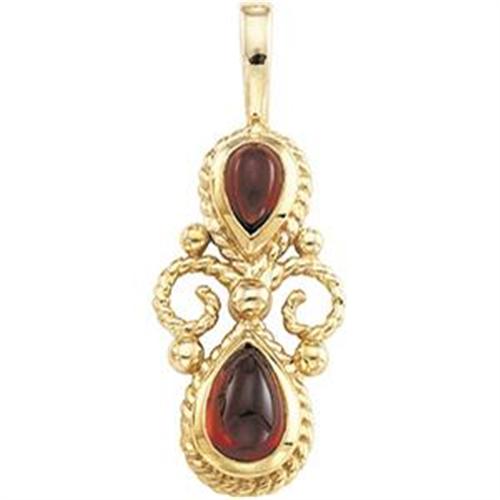 14k Yellow Gold Antique Style Pendat, featuring 2 GENUINE MOZAMBIQUE GARNETS. The Garnet Total Weight = ONE CARAT!