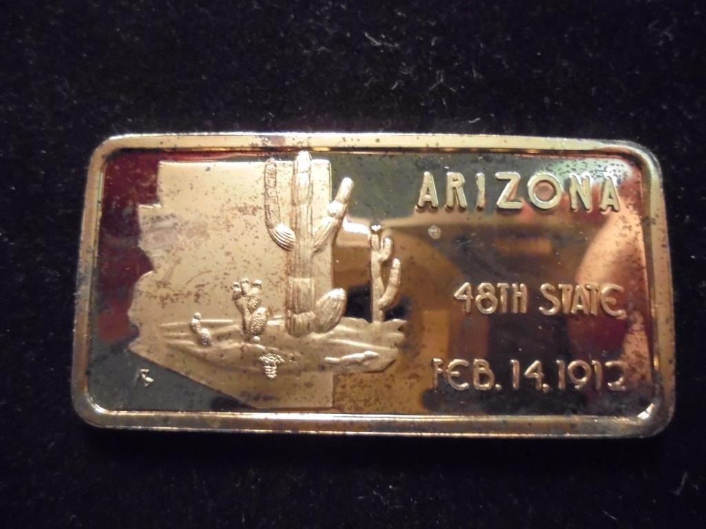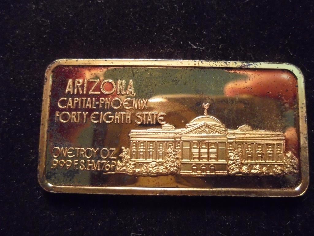 GOLD PLATED 1 OZ. .999 SILVER INGOT "ARIZONA"