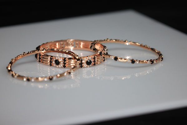 GOLD PLATED AND CZ BANGLE SET OF 3 (BACK) **|**|** GOLD PLATED AND CZ BANGLE SET OF 3 (BACK); METAL BRASS; BRAZILIAN JEWELRY; 14K GOLD PLATED ; MSRP: $0