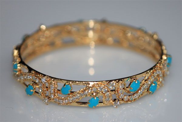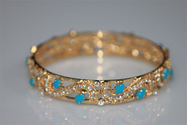 GOLD PLATED AND CZ BANGLE (TURQOUISE) **|**|** GOLD PLATED AND CZ BANGLE (TURQOUISE); METAL BRASS; BRAZILIAN JEWELRY; 14K GOLD PLATED ; MSRP: $0
