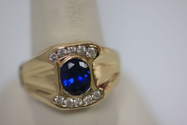 GOLD PLATED BLUE CZ MENS RING 14K **|**|** GOLD PLATED BLUE CZ MENS RING 14K; METAL BRASS; BRAZILIAN JEWELRY; 14K GOLD PLATED ; MSRP: $0