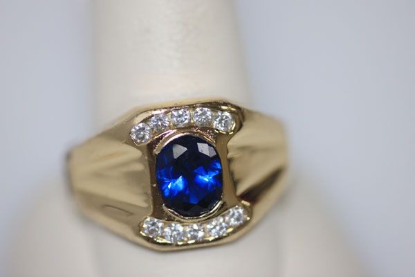 GOLD PLATED BLUE CZ MENS RING 14K **|**|** GOLD PLATED BLUE CZ MENS RING 14K; METAL BRASS; BRAZILIAN JEWELRY; 14K GOLD PLATED ; MSRP: $0