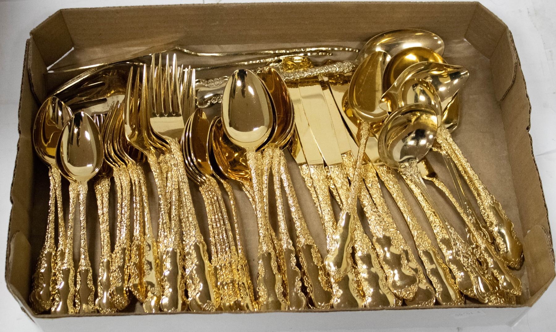 GOLD PLATED FLATWARE AND SERVING UNTENSIL SET