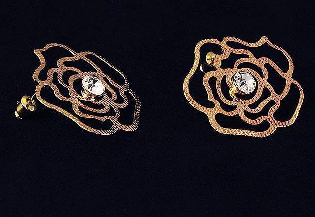 GOLD PLATED FLOWER DESIGN EARRING 2.93g **|**|** 1.30 INCHES FASHION STATEMENT GOLD PLATED FLOWER EARRING WITH SWAROVZKI CRYSTAL ; MSRP: $100