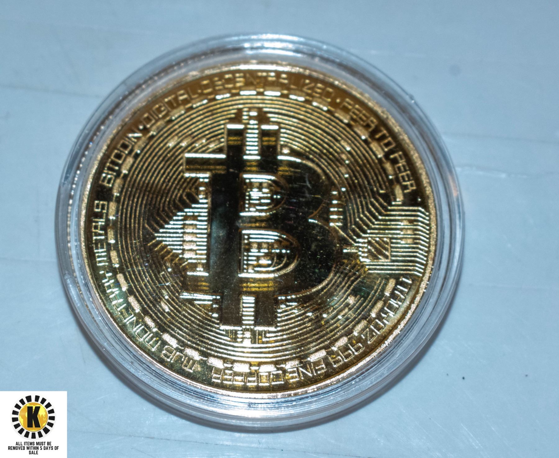 GOLD PLATED NOVELTY BITCOIN IN CLEAR CASE