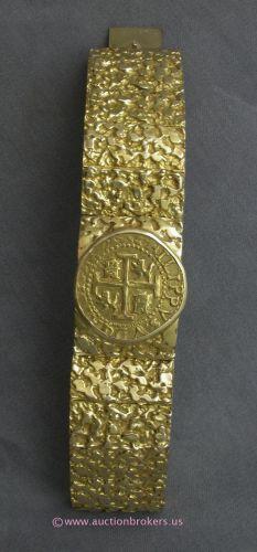 GOLD PLATED SIGNED "ARI" NUGGET STYLE BRACELET. 128.7 GRAMS.