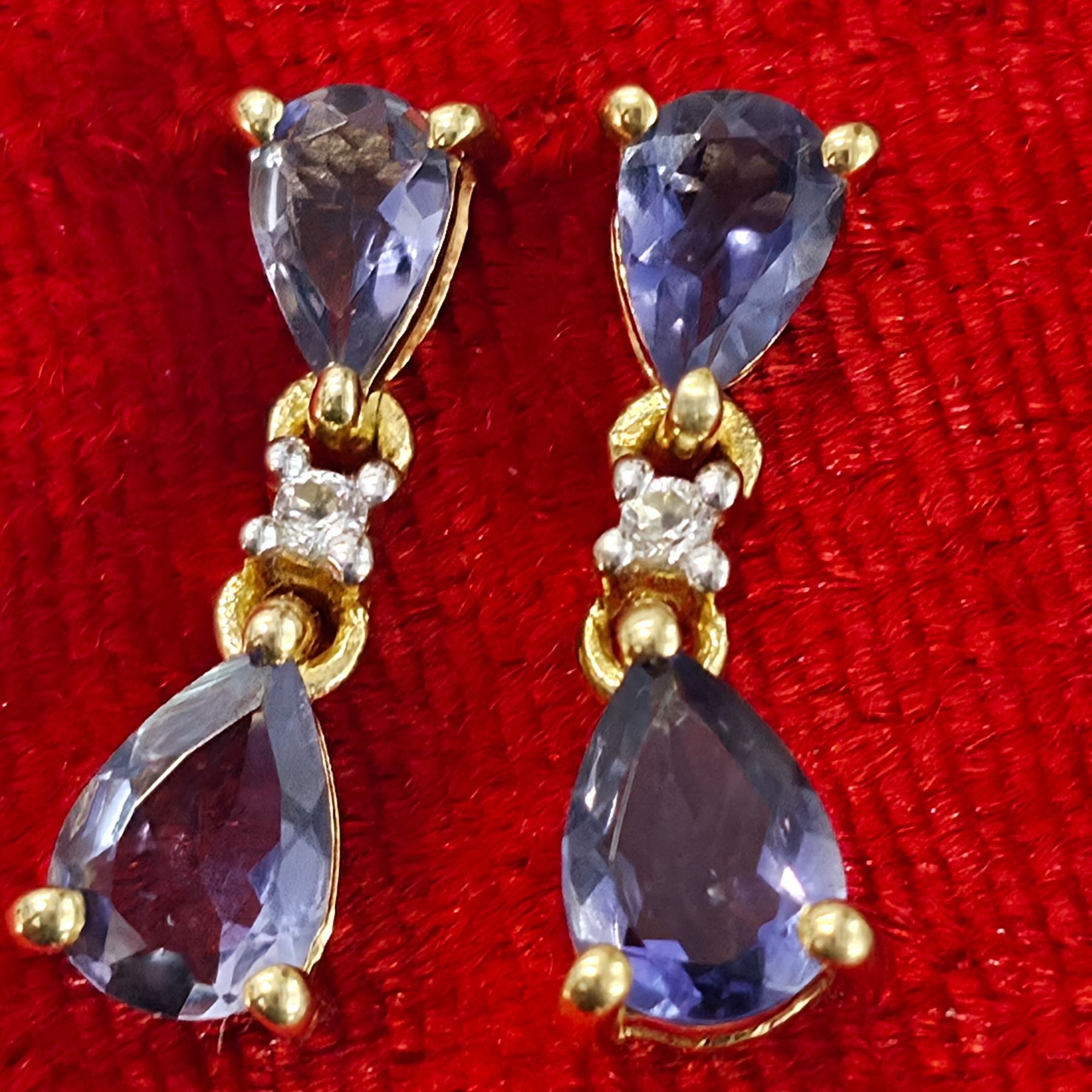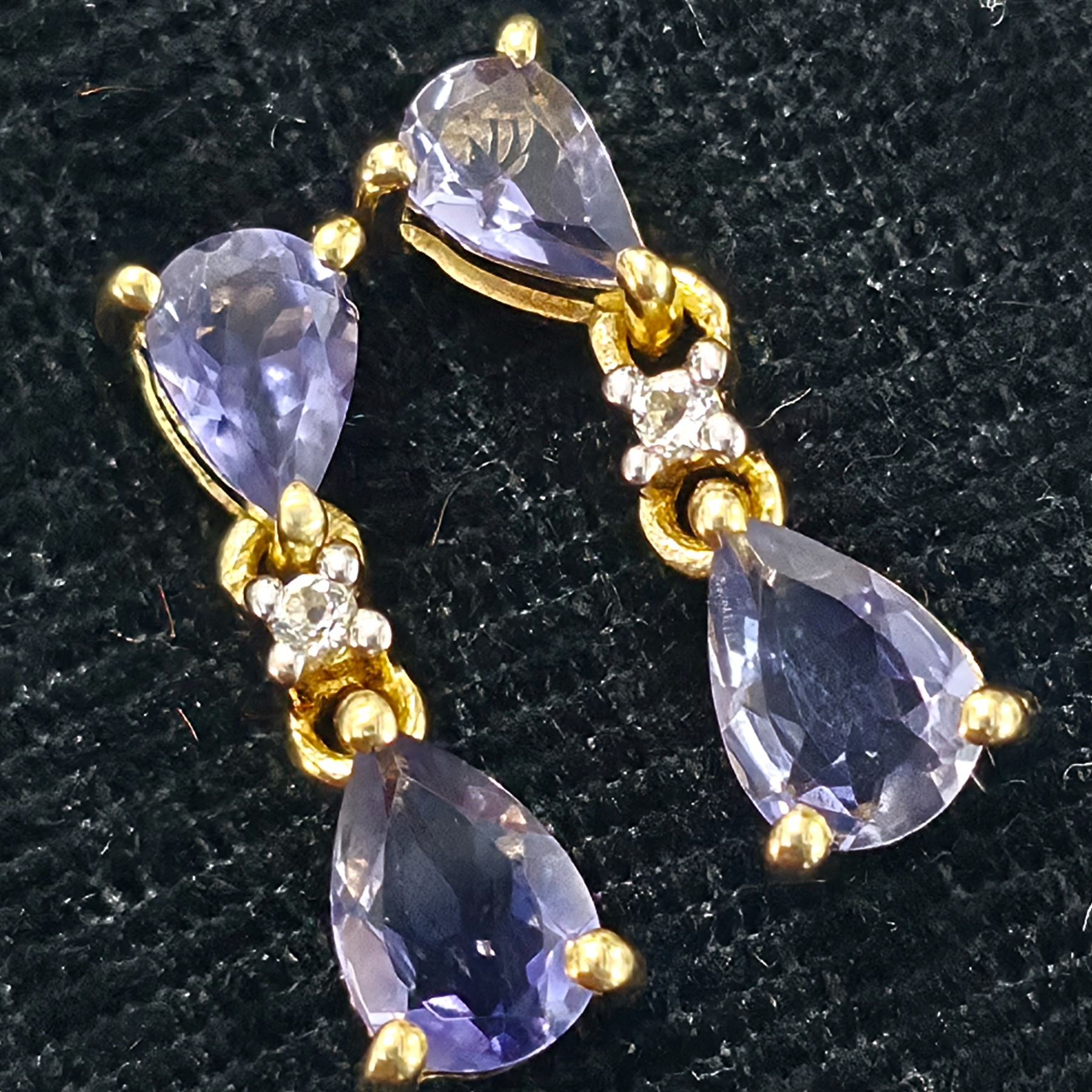 GOLD PLATED SILVER IOLITE(1.8CT)GOLD RHODIUM PLATED