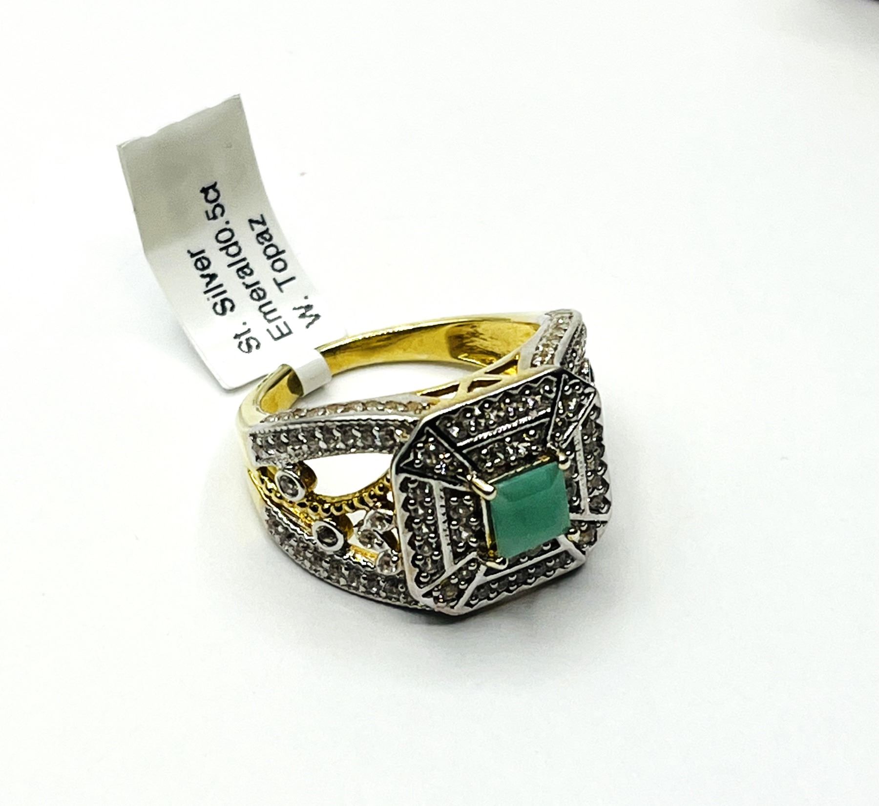 (0.50CT) WITH NATURAL WHITE TOPAZ (1CT) RING, SIZE 9, W/A $500.00. EMERALD IS THE BIRTHSTONE FOR MAY. **ALL ITEMS MUST BE REMOVED BY 5PM SATURDAY, NOVEMBER 22ND 2025. ALL REMAINING ITEMS WILL BE SUBJECT TO A $6.00 PER DAY STORAGE CHARGE. ANY ITEMS REMAINING AFTER MONDAY, DECEMBER 8TH 2025 WILL BE CONSIDERED FORFEITED. NO REFUNDS WILL BE ISSUED FOR FORFEITED ITEMS. TO SCHEDULE A PICK UP APPOINTMENT CLICK HERE