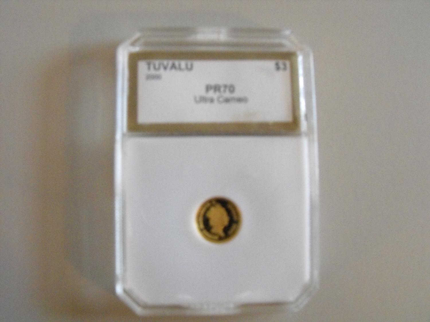 GOLD PROOF $3 PCI MS 70 TUVALU .9999 FINE GOLD