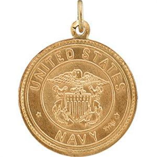 14k Yellow Gold Pendant ST. CHRISTOPHER U.S. NAVY MEDAL measuring 3/4 inch across. There is a 14k Gold bail to slip through a chain.