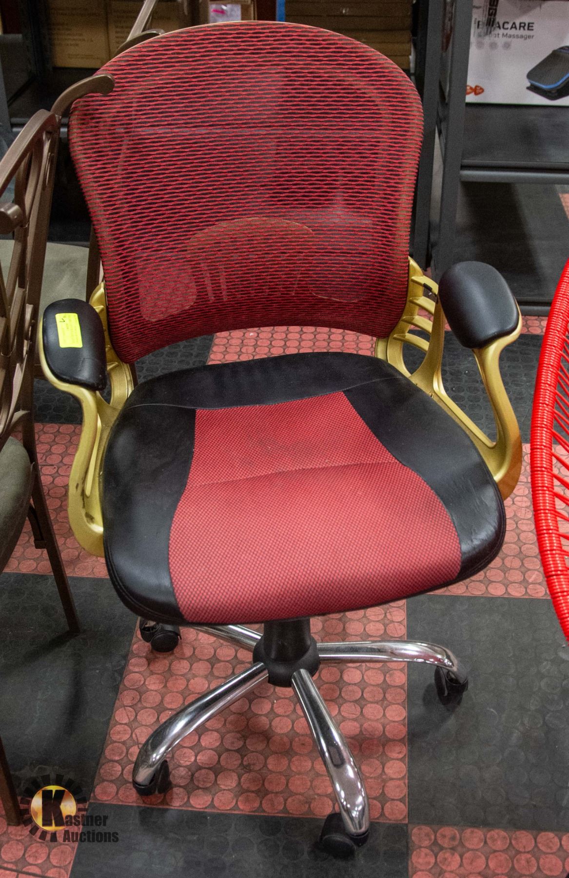 GOLD, RED & BLACK COMPUTER CHAIR WITH MESH