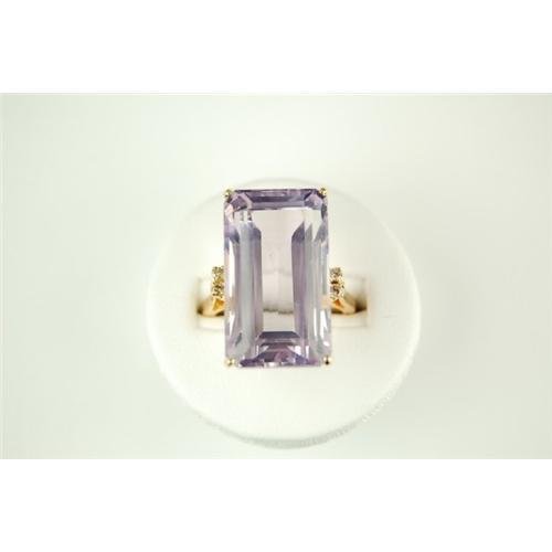 This 10k Yellow Gold ring features a Stunning GENUINE PINK KUNZITE = 26.00 CARATS!! The KUNZITE is rectangular in shape and it is a Beautiful Pink color. There are 2 DIAMONDS set each side that act as accent to the Kunzite. This ring is a Size 7 1/4 and it can be resized either larger or smaller.( An interesting fact about Kunzite is that the actual name 'Kunzite' was named after George Kunz, an important Gemolgist for a famous 5th Avenue Jewelry store in 1902.)
