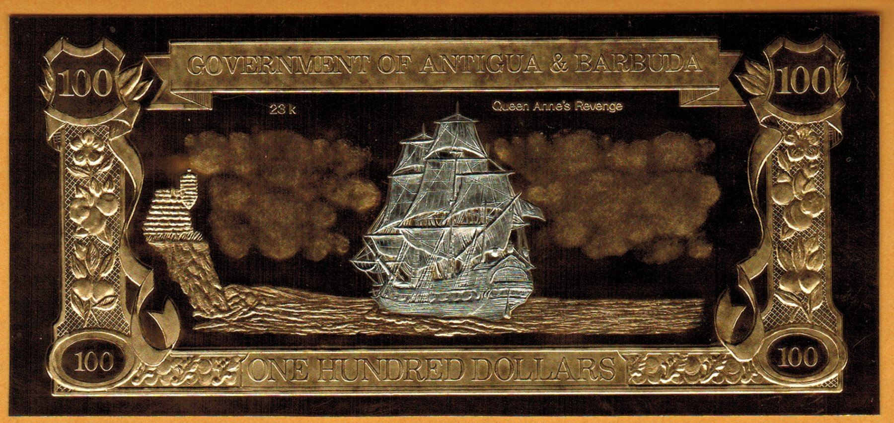 GOLD & SILVER BANK NOTE - ANTIGUA & BARBUDA - BLACKBEARD - 100 DOLLARS - LEGAL TENDER