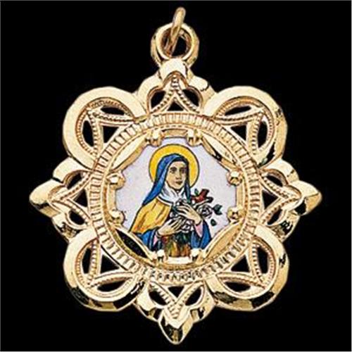 10k Yellow Gold St. Theresa Framed Enamel Pendant. This beautiful Pendant measures 25.75X25.75MM.