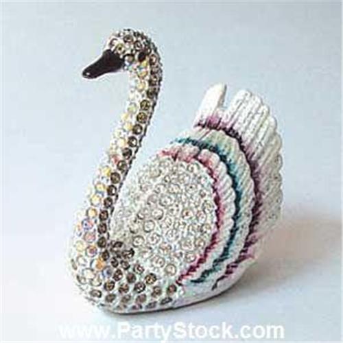 24K GOLD SWAROVSKI CRYSTAL WHITE PINK SWAN JEWELRY BOX