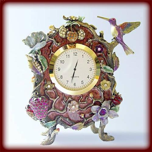 GOLD SWAROVSKI CRYSTALS HUMMINGBIRD FLOWERS CLOCK