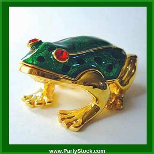 GOLD SWAROVSKI CRYSTALS! FROG JEWELRY TRINKET BOX