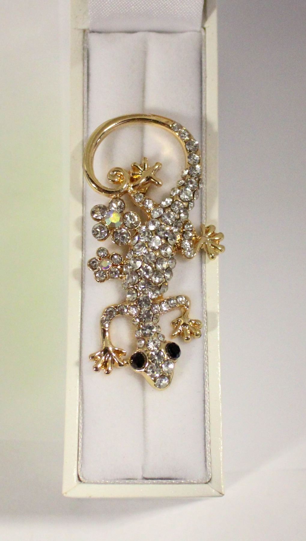 GOLD TONE AND CLEAR RHINESTONES GECKO 2.1”X1”