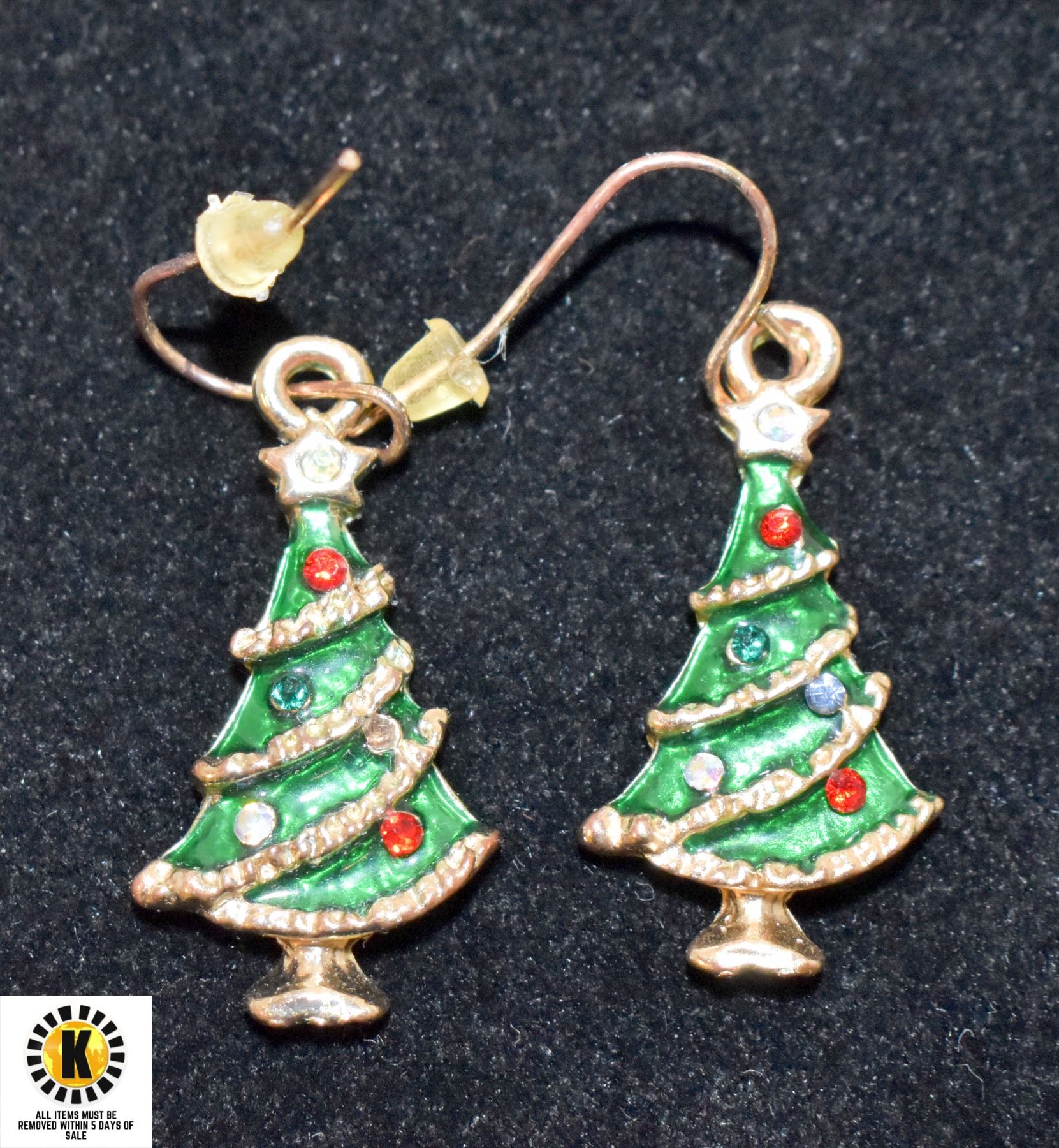 GOLD TONE AND ENAMEL CHRISTMAS EARRINGS