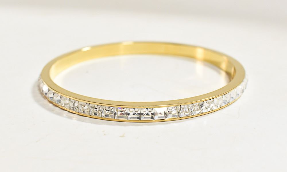 GOLD TONE BANGLE WITH WHITE RHINESTONES