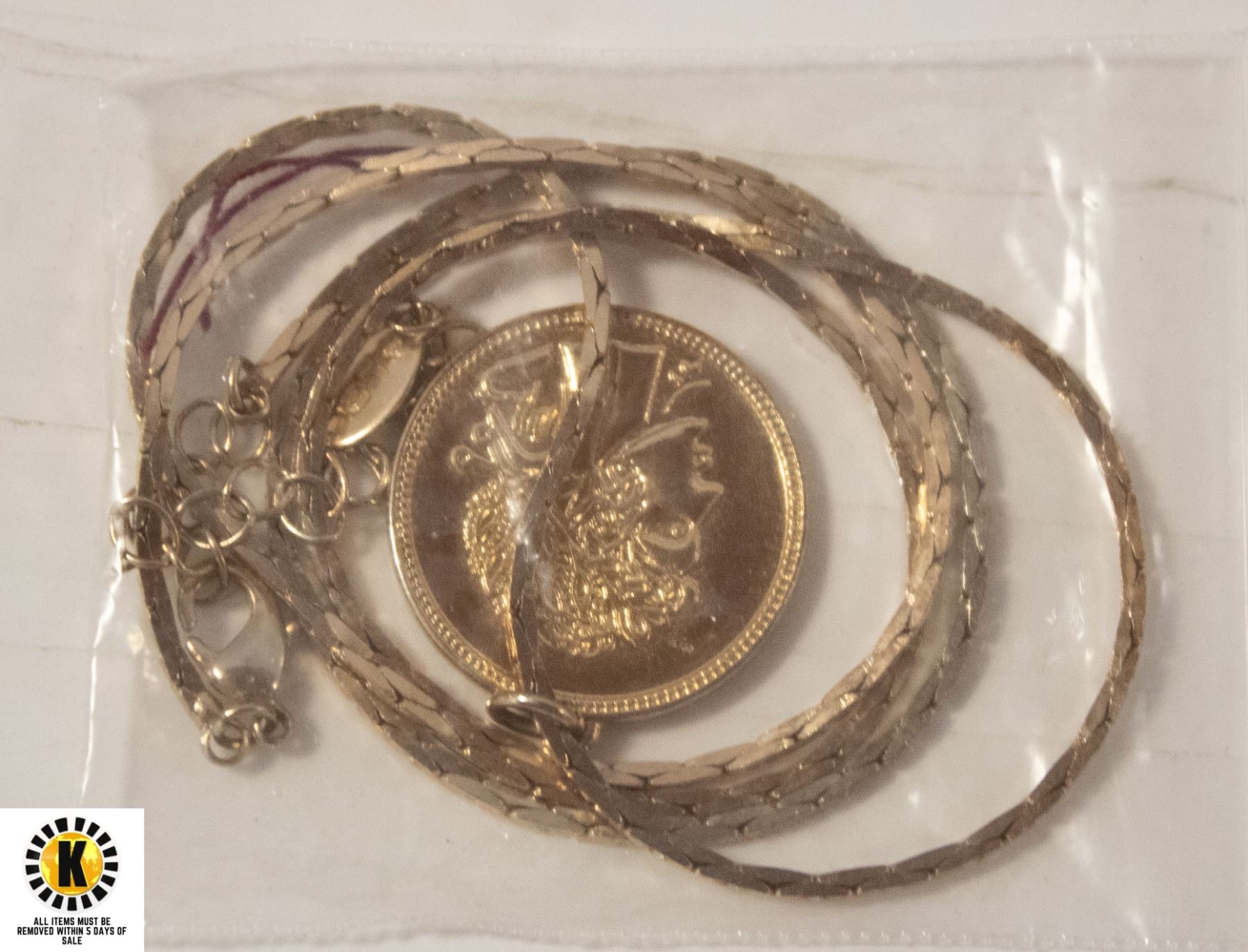 GOLD TONE COIN/MEDALLION AND NECKLACE SET