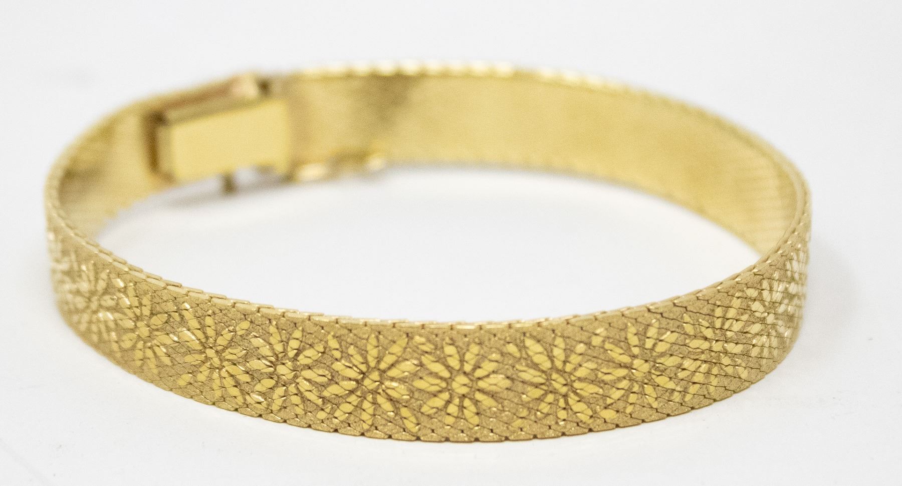 GOLD TONE FLEX BRACELET WITH FLORAL DETAIL