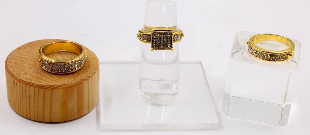 GOLD TONE LADIES WHITE ZIRCONIA 3 RING SET SZ 7