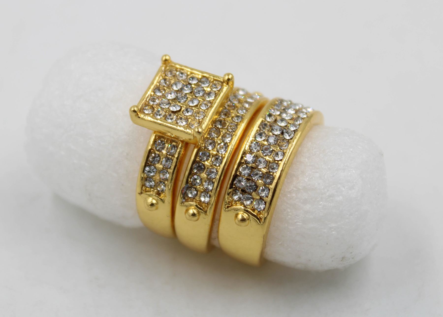 GOLD TONE LADIES WHITE ZIRCONIA 3 RING SET SZ 8