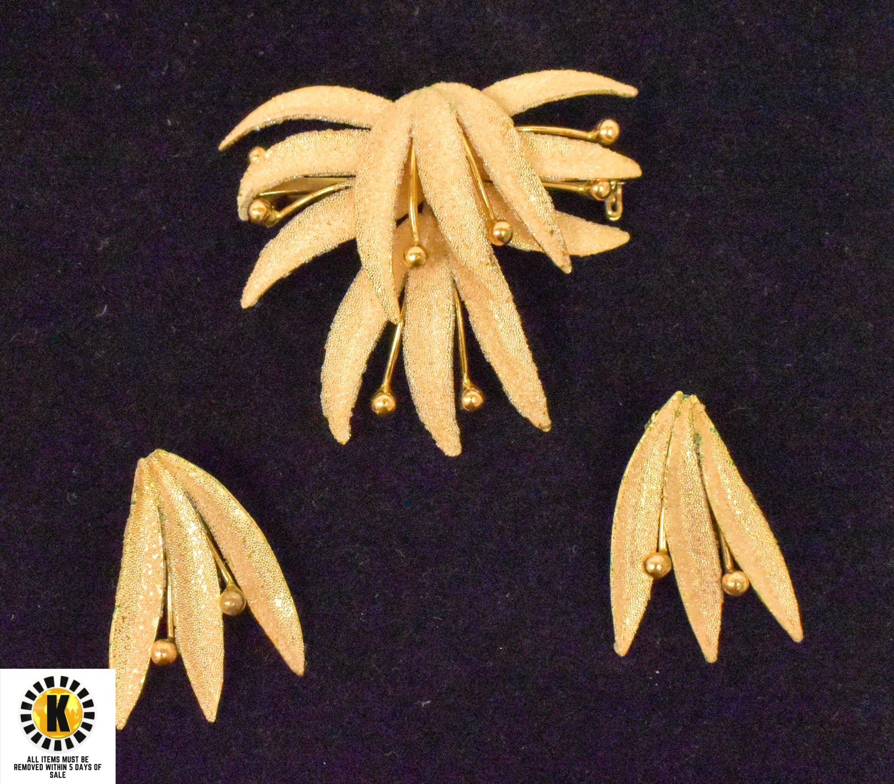 GOLD TONE LEAF STYLE EARRINGS AND BROOCH