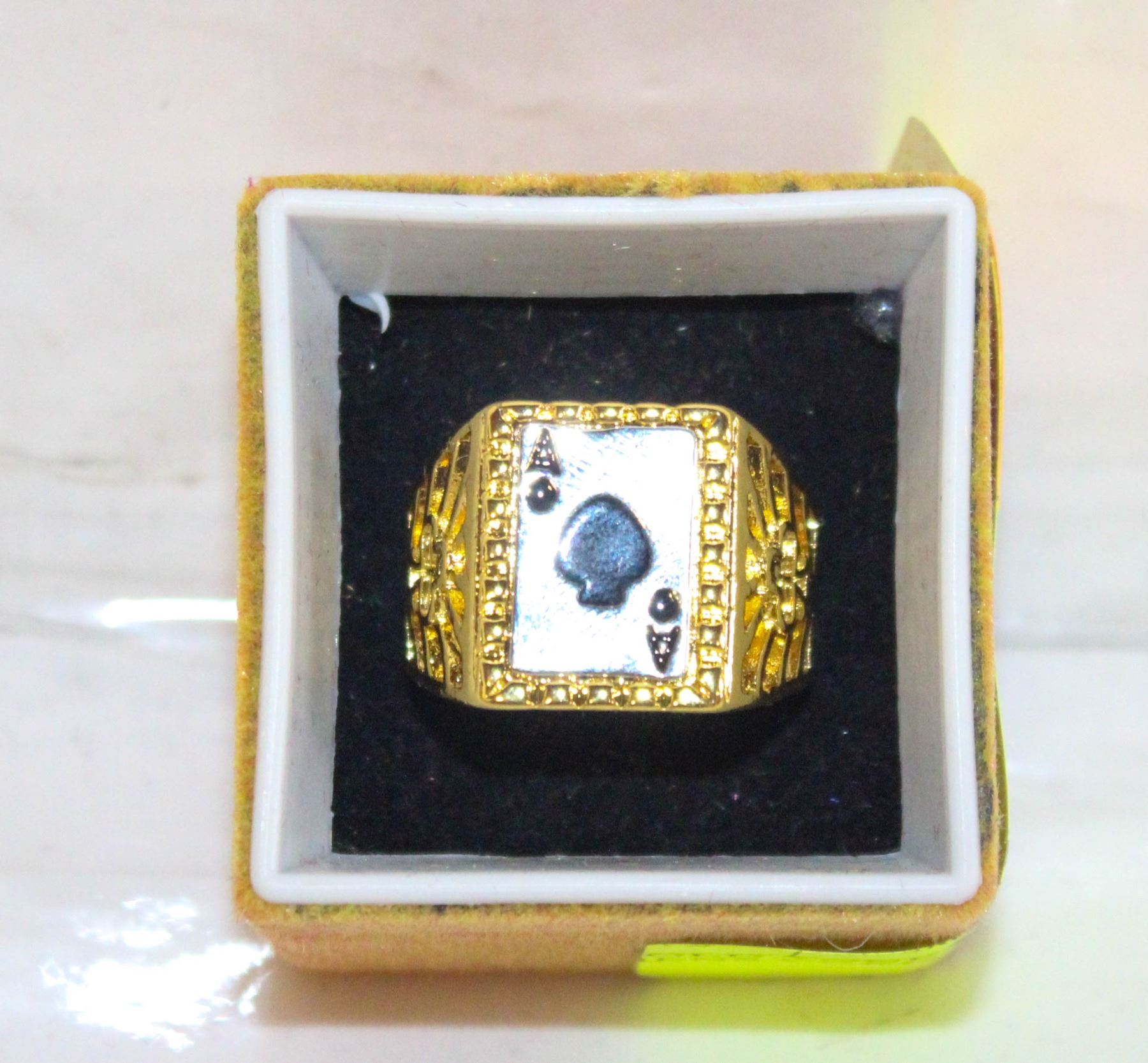 GOLD TONE LUCKY ACE SPADES MENS CARD RING SZ 10