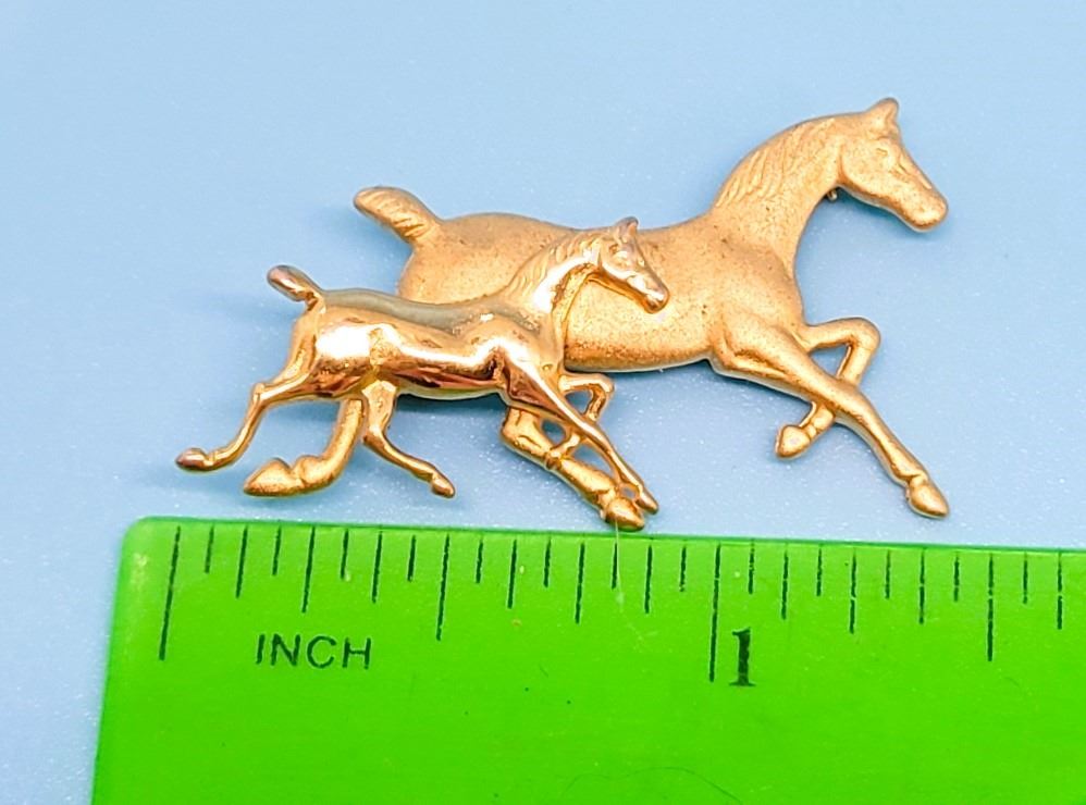 BROOCH, MARE HAS A BRUSHED FINISH AND COLT IS SHINY. JEWELLERY