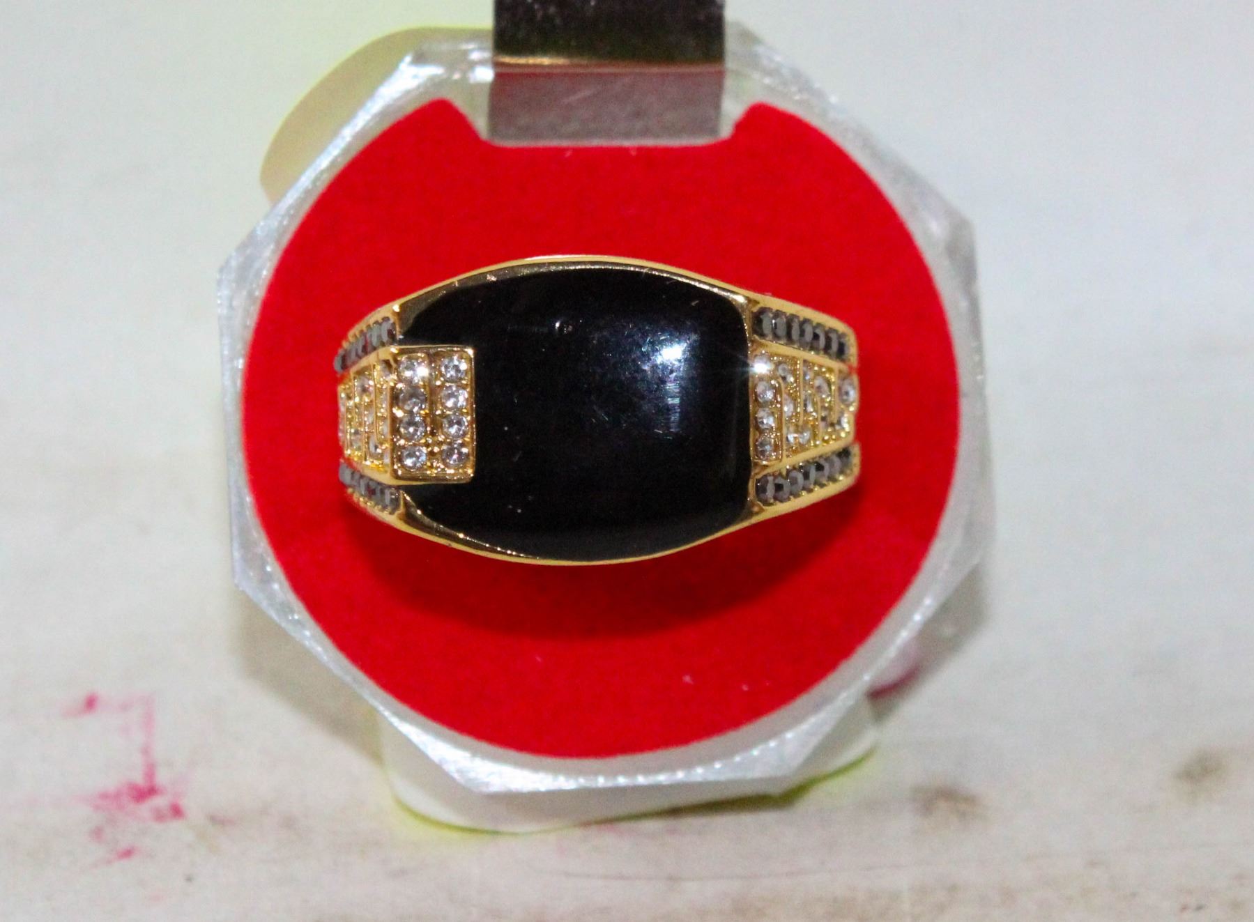 GOLD TONE MEN'S BLACK RING - SIZE 12