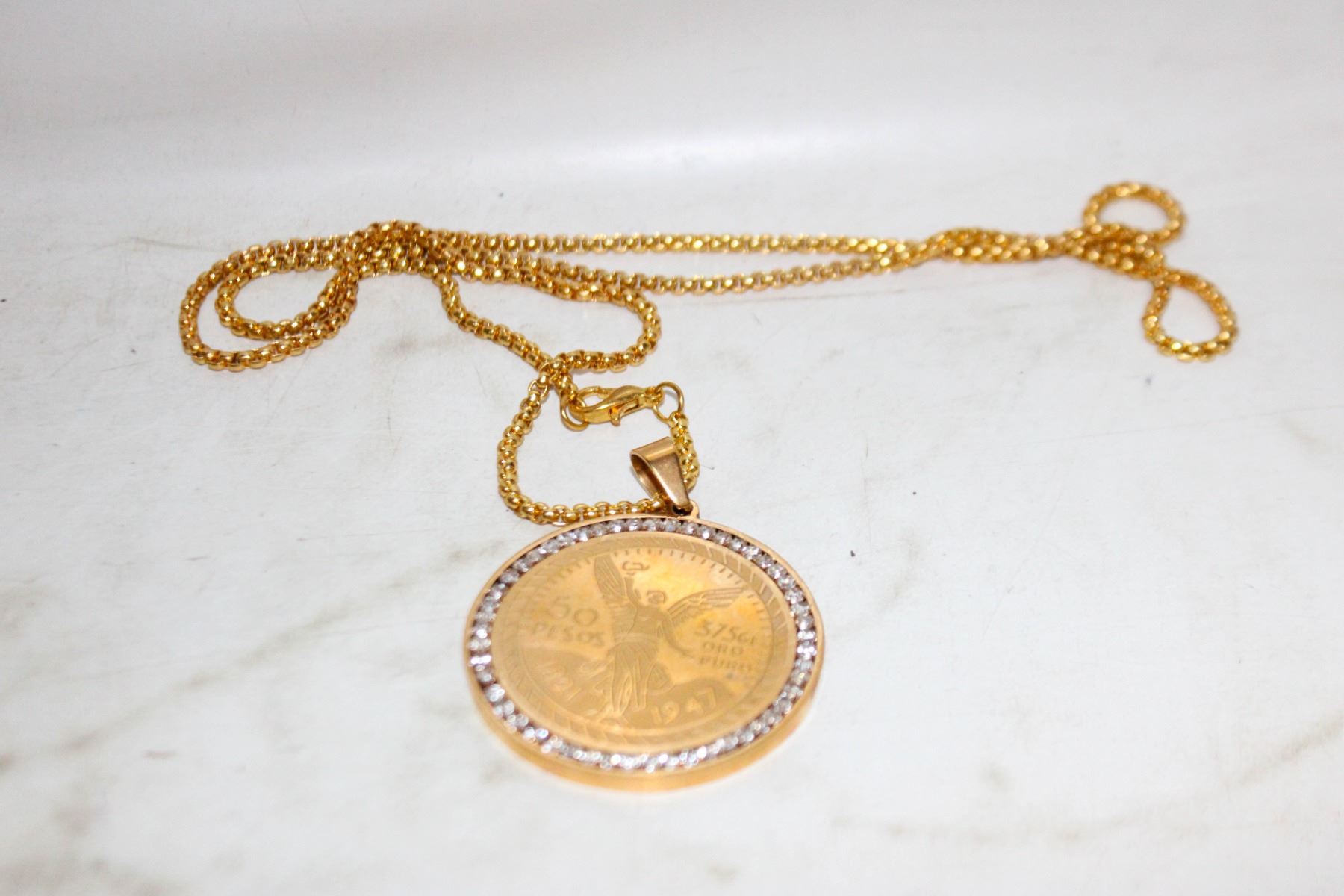 GOLD TONE MEXICAN 50 PESOS COIN PENDANT