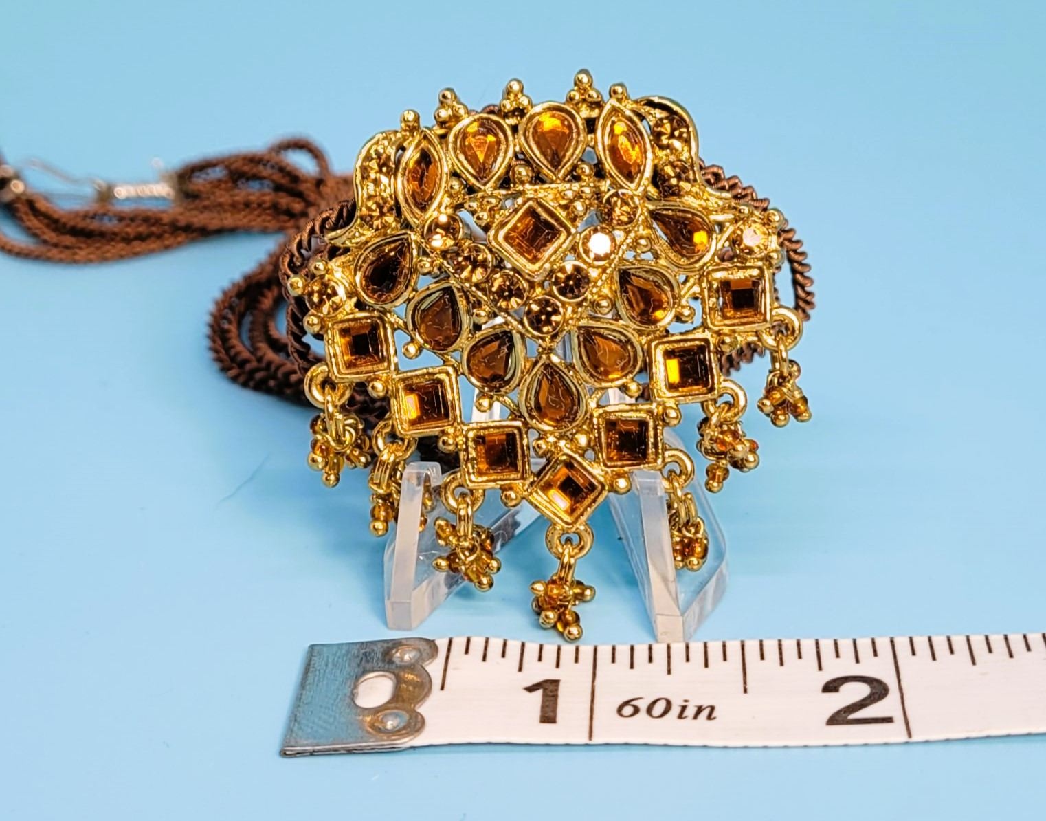 COLORED CRYSTALS PENDANT ON A MULTI STRAND CORD. JEWELLERY