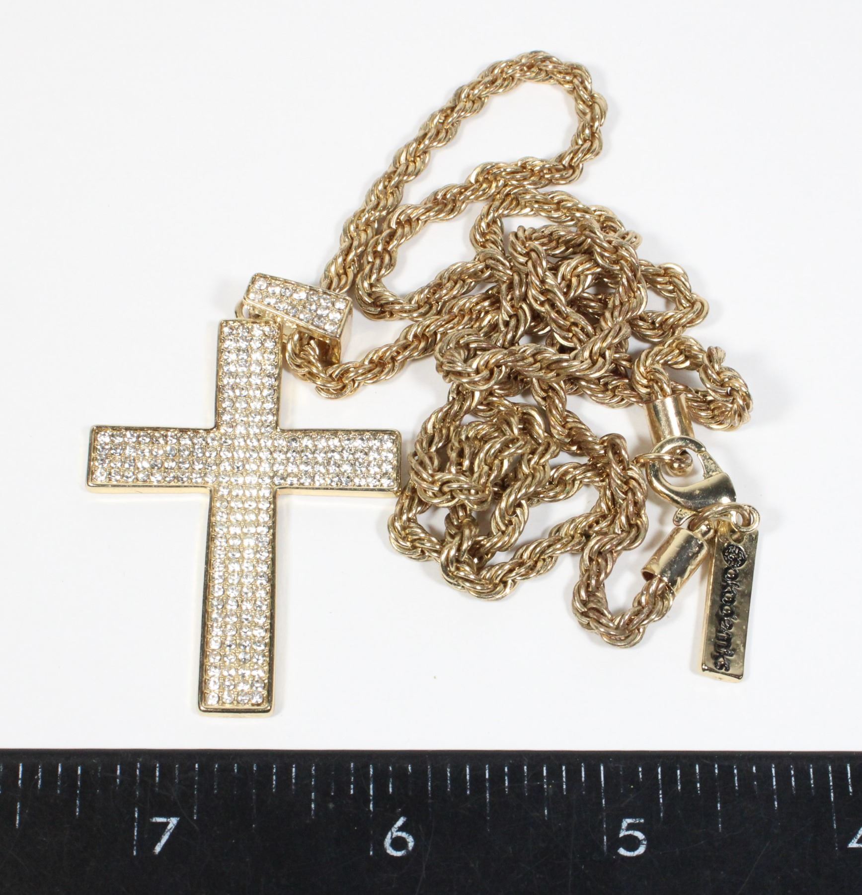 GOLD TONE RHINESTONE CROSS PENDANT ONE ROPE CHAIN