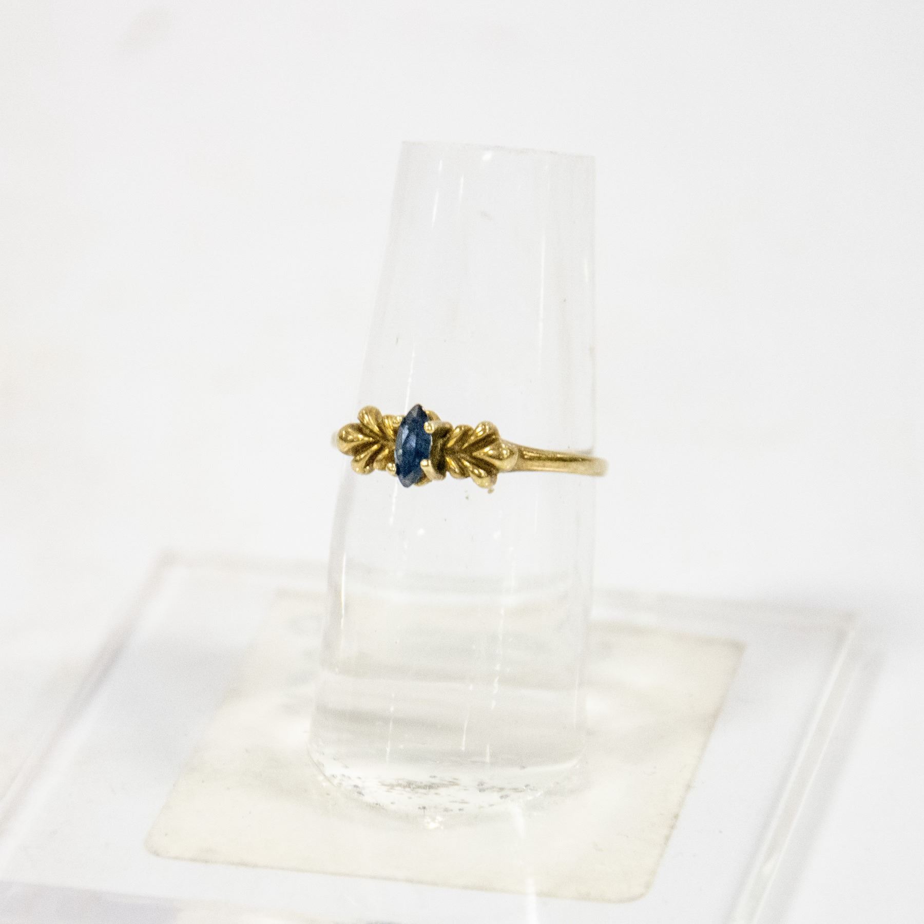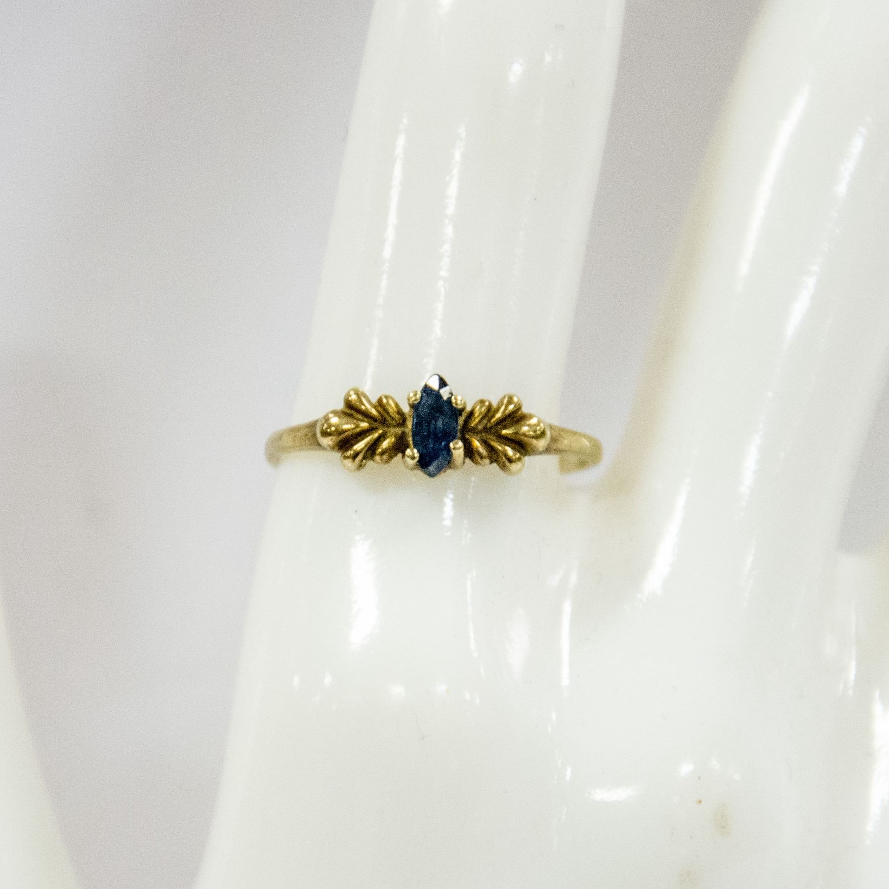 GOLD TONE RING W/ BLUE ACCENT STONE - SIZE 8.5