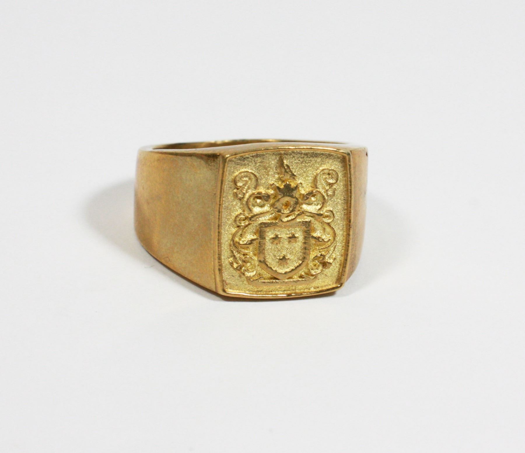 GOLD TONE SIZE 11 CREST DESIGN SIGNET RING